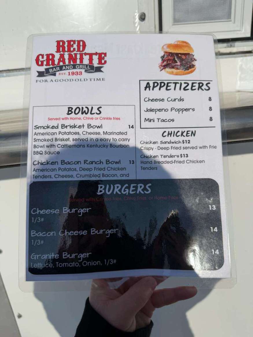 FOOD AVAILABLE FROM THE REDGRANITE FOOD TRAILER NEAR THE BOAT LANDING